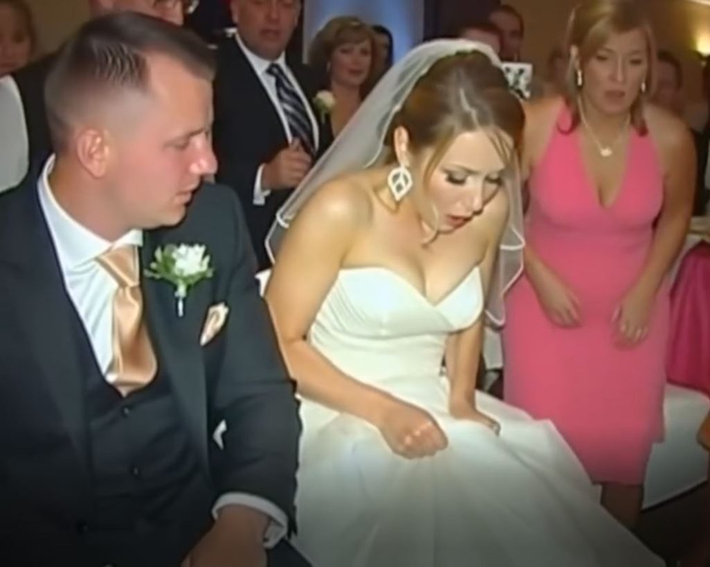 With fingers intertwined, Emily and Ryan turned to walk back up the aisle. But just a few steps in, something shifted beneath Emily’s flowing dress, and the crowd suddenly fell silent.