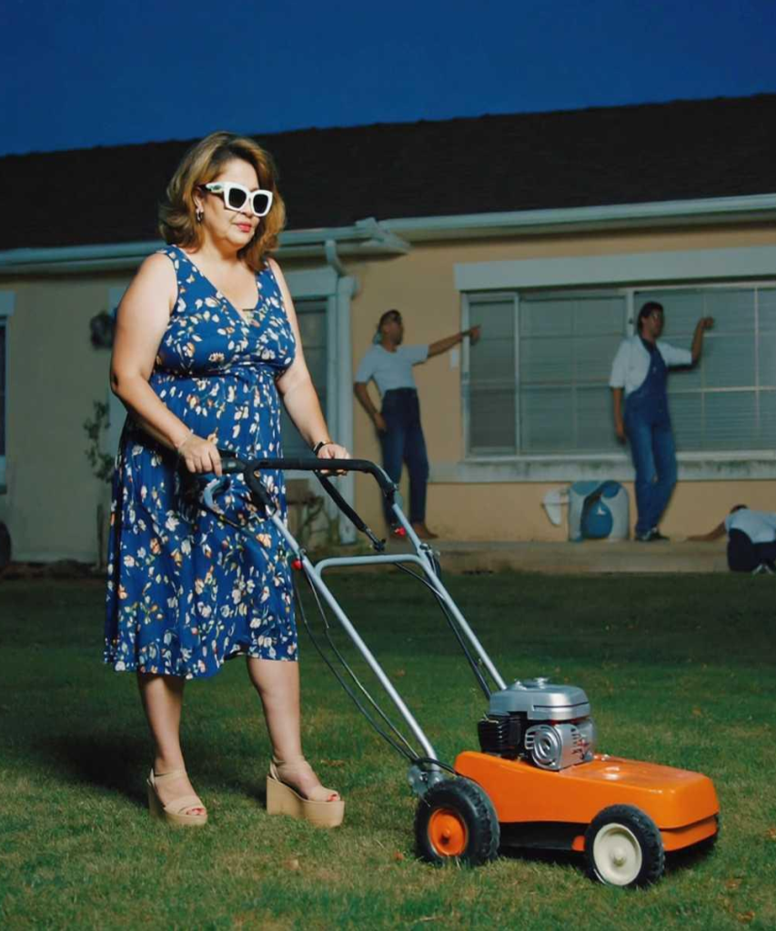 Sabina—our neighbor—gliding across our lawn at midnight. She wore a floral sundress, wedge sandals, and oversized sunglasses, as if it were a bright summer afternoon instead of a moonlit night. The street was silent, and in that eerie glow she cut the grass in flawless, straight lines.