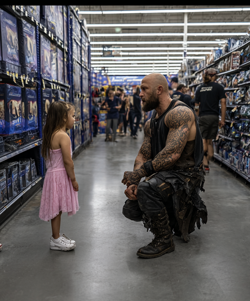 For years, Tank had been known as a rough, intimidating figure—the leather, the tattoos, the motorcycle patches. But under Walmart’s fluorescent lights, he was simply a protector, a man willing to risk everything for family.