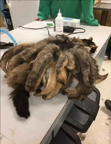 Cats are known for their independence and fastidious grooming habits, but Hidey’s condition told a different story. Years of neglect had left her trapped beneath layers of hardened fur that weighed her down and caused her constant pain.