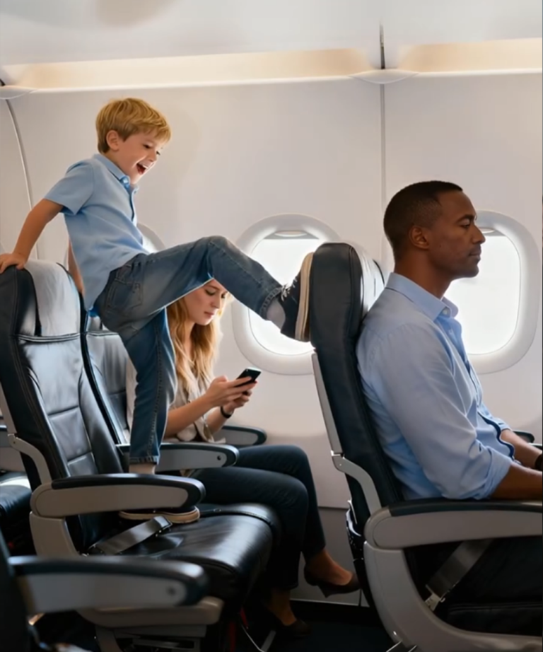 I unbuckled my seatbelt, stood up, and turned around. The boy froze mid-kick, his eyes wide — not with fear, but with curiosity.
