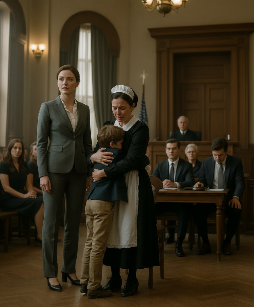 On the day of the hearing, Clara wore her old maid’s uniform—the only clean clothes she had left. Her hands trembled, but her gaze remained steady.