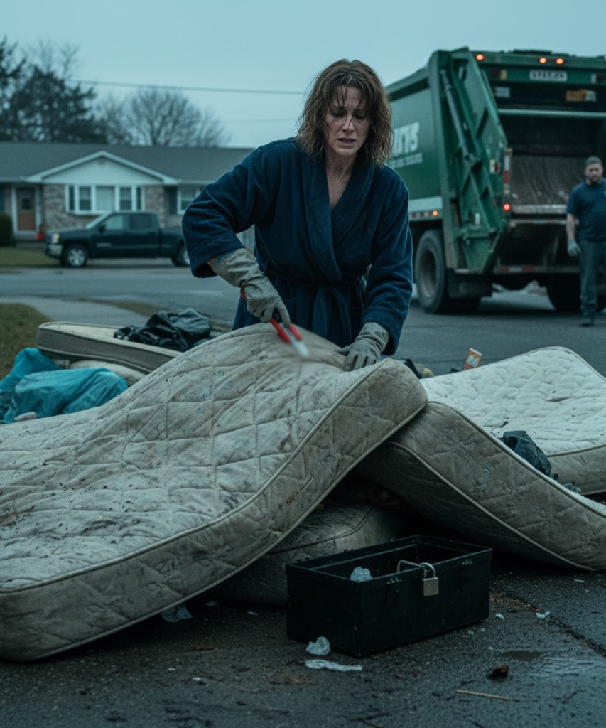 I never thought my own story would lead me here, knee-deep in trash, clutching a utility knife, searching for the mattress my husband dumped in the middle of the night.