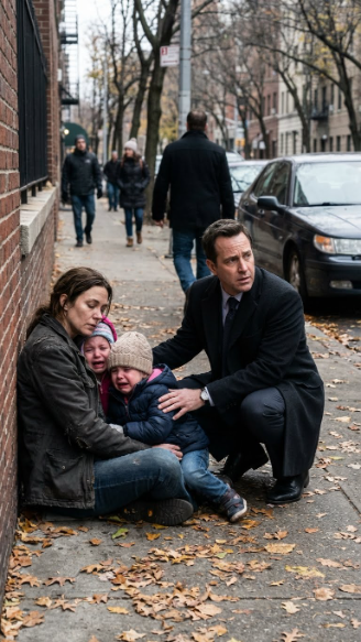 He stepped out into the cold, the city noise fading under the sound of the children’s sobs. Up close, the woman’s face was pale and exhausted, lips cracked, breathing shallow. The twins’ cheeks were streaked with dirt and tears, their tiny hands gripping her sleeve.